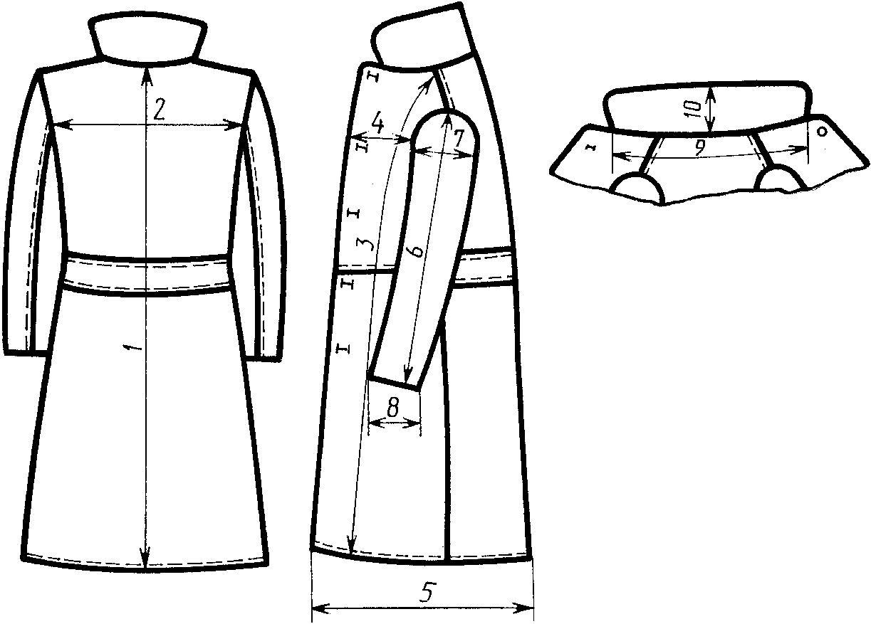 1. Рамкой обведены размерные признаки для проектирования одежды.