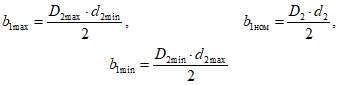 3.3.8. Провести касательные от крайних правых точек bmax, bном, bmin к rmin, rном, rmax соответственно.