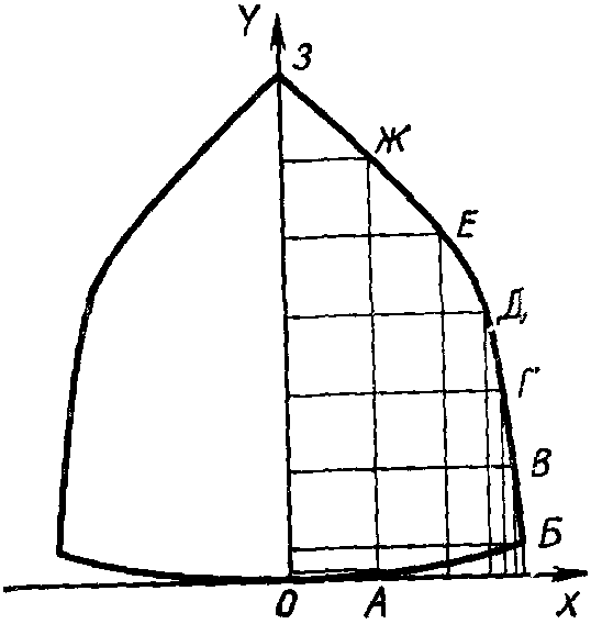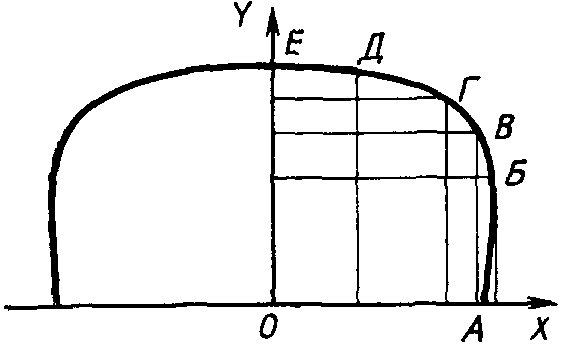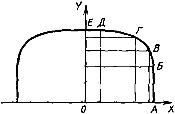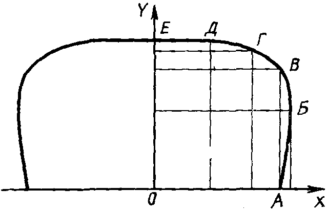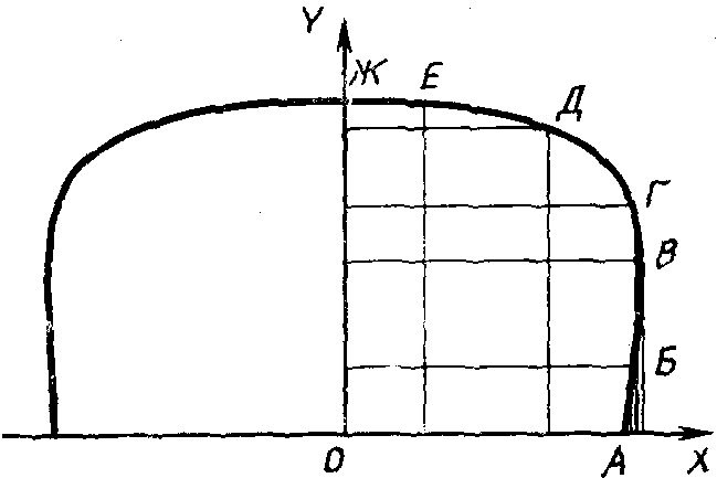 1. Контур лекала 1/2 ветрозащитной прокладки в наушники и назатыльник оформляют по точкам О, Д, А, Б, В, Г, О.