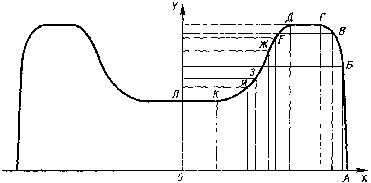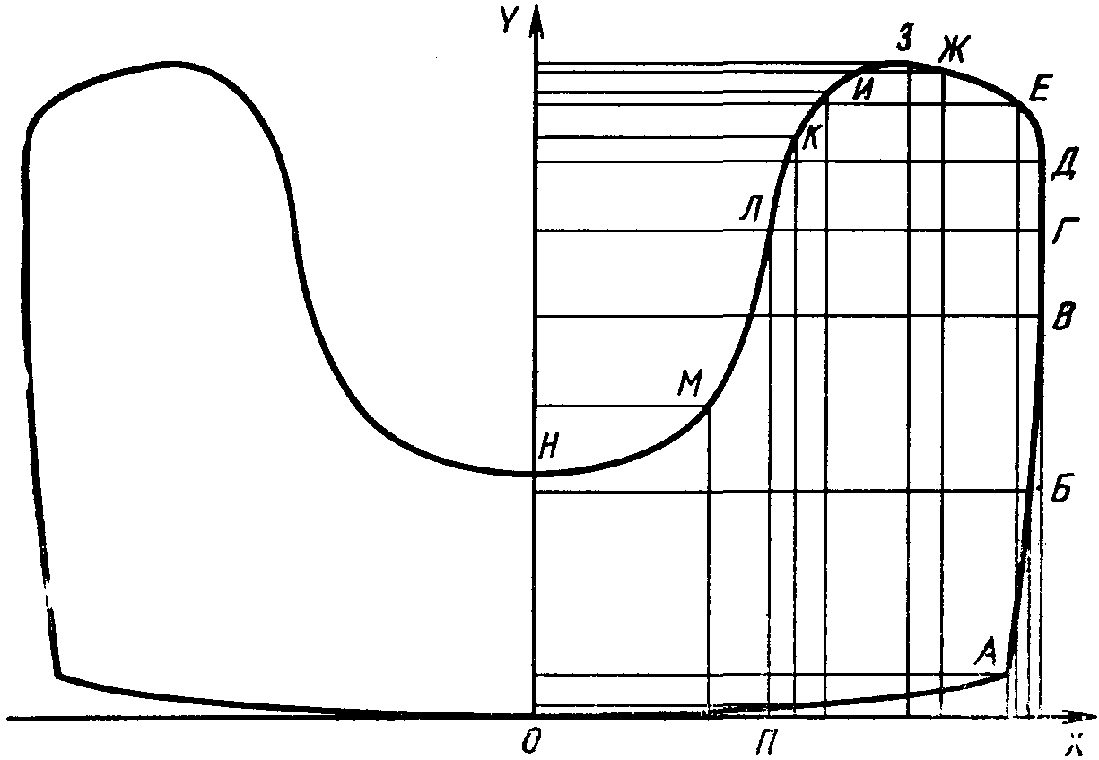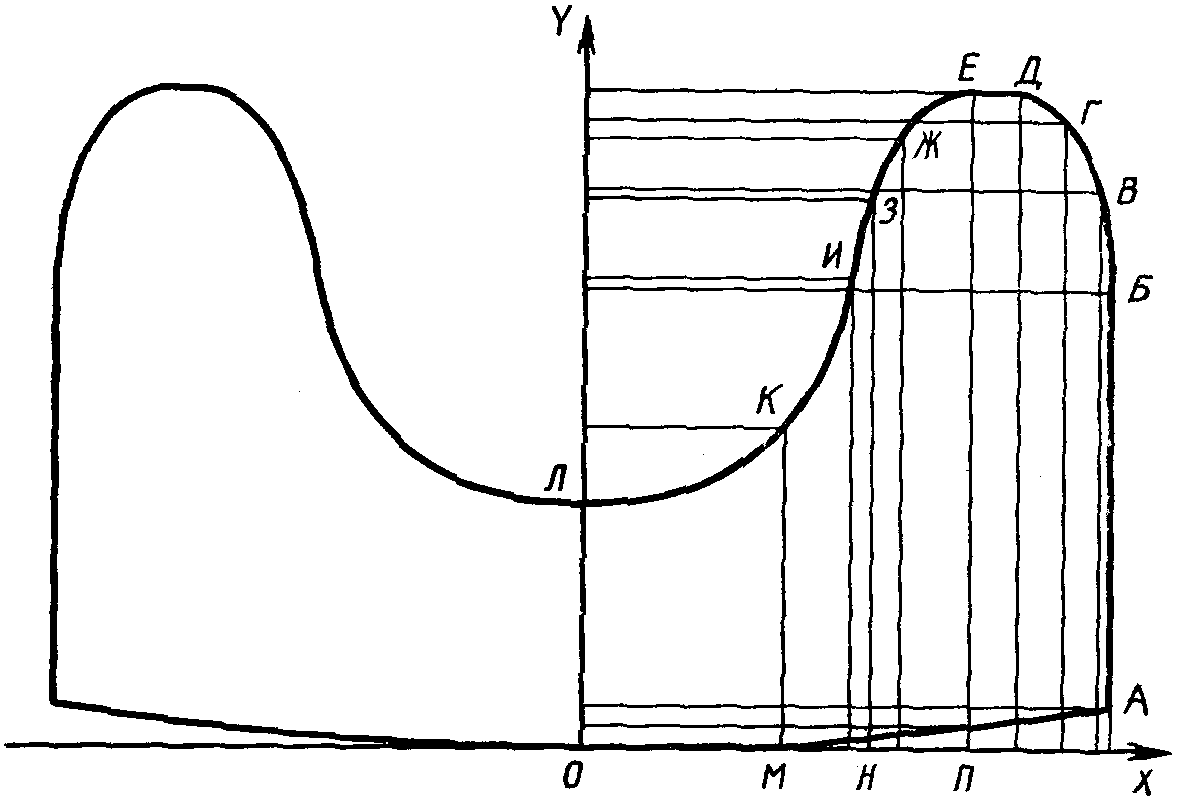 1. Контур лекала 1/2 прокладки в наушники и назатыльник оформляют по точкам О, М, Н, П, А, Б, В, Г, Д, Е, Ж, З, И, К, Л, О.