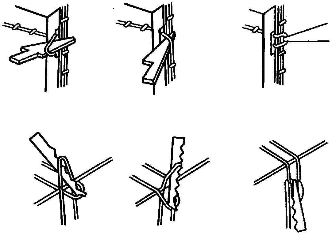 1.11. Проволочные пояса должны прибиваться к дощечкам и планкам скобами. Расстояние между поясами не должно превышать 200 мм.
