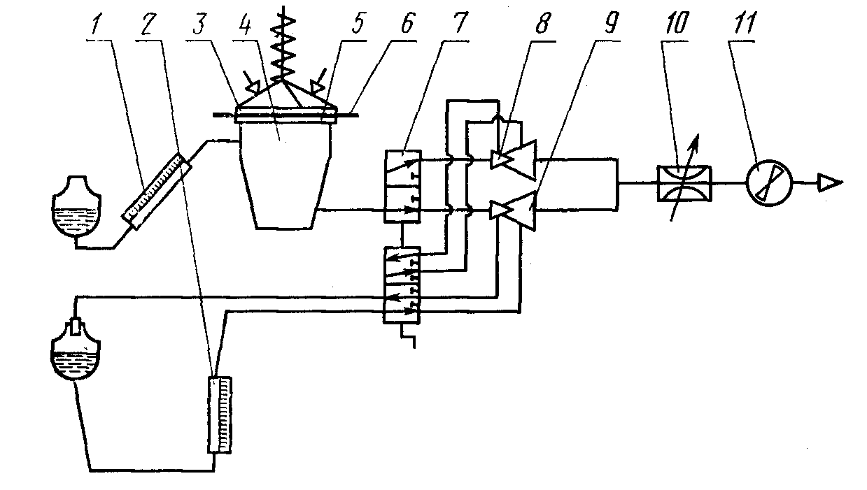 7 - переключатель трубок Вентури; 8, 9 - расходомеры