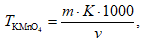 v - объем раствора марганцевокислого калия, израсходованного на титрование, см3.