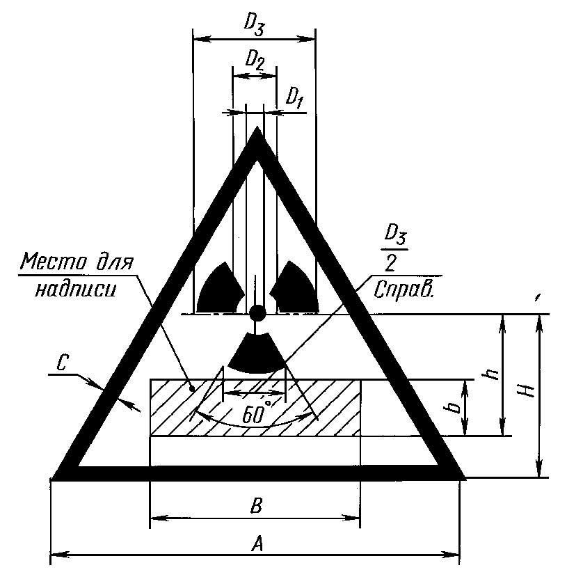 2.1. Знак радиационной опасности должен иметь форму и размеры, указанные на чертеже и в