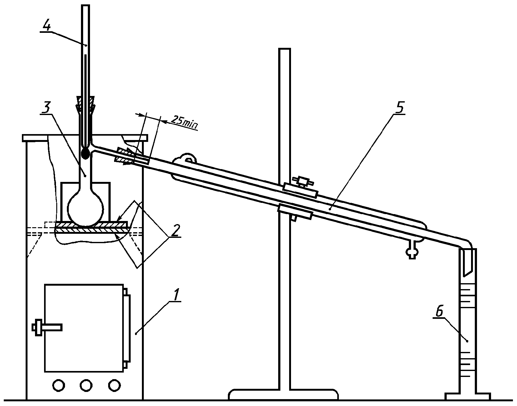 Перед проведением испытания собирают прибор для перегонки в соответствии с