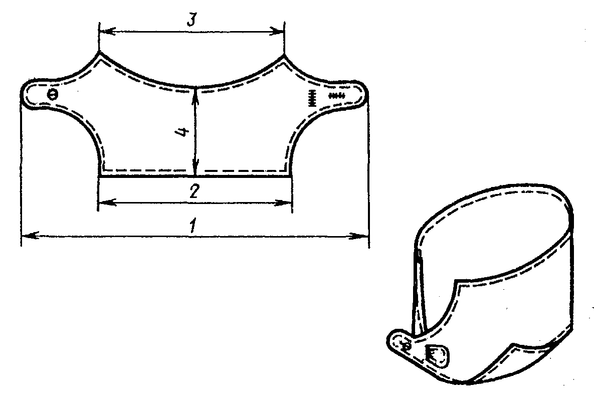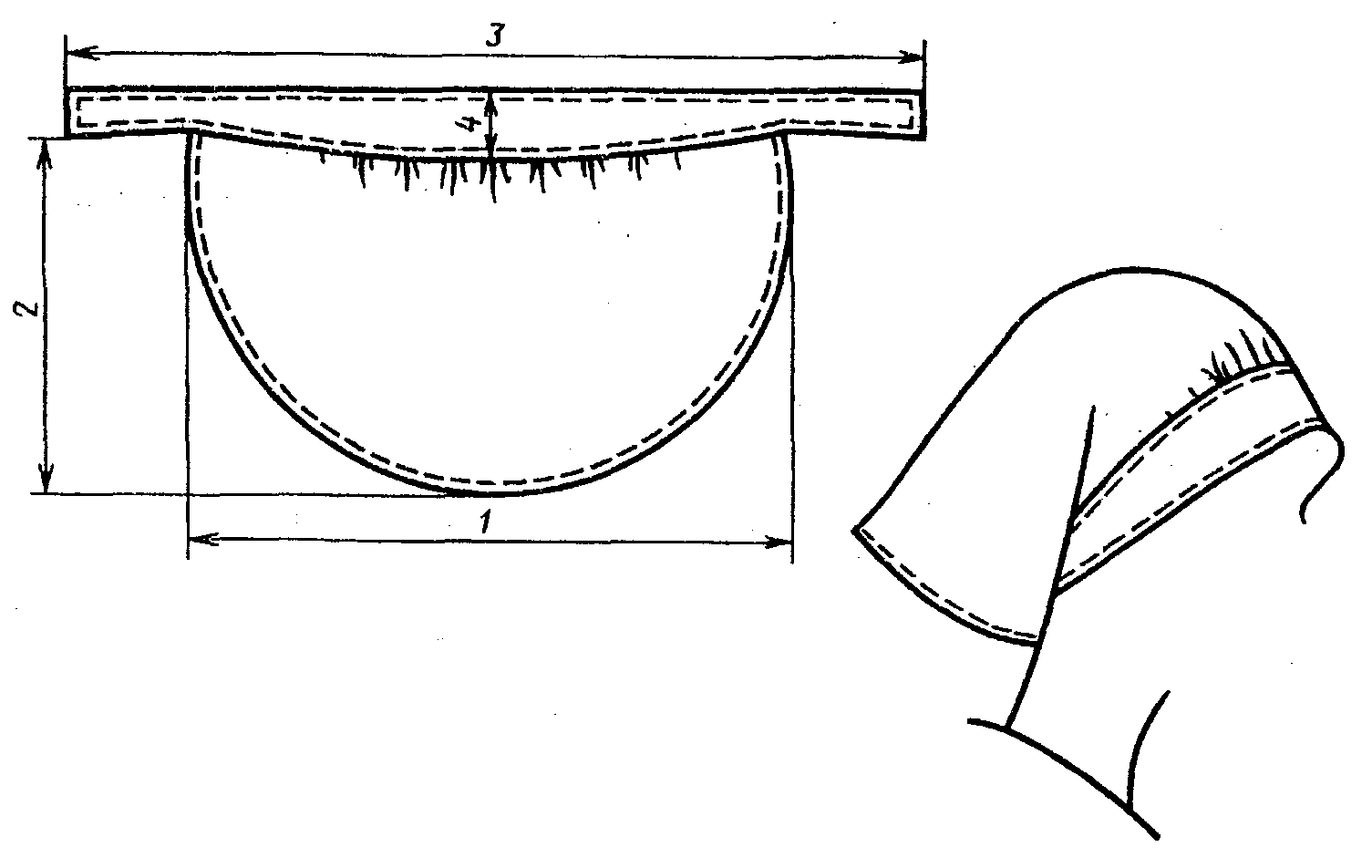 2. Подкладку стенки кепи вырезают по штриховой линии.