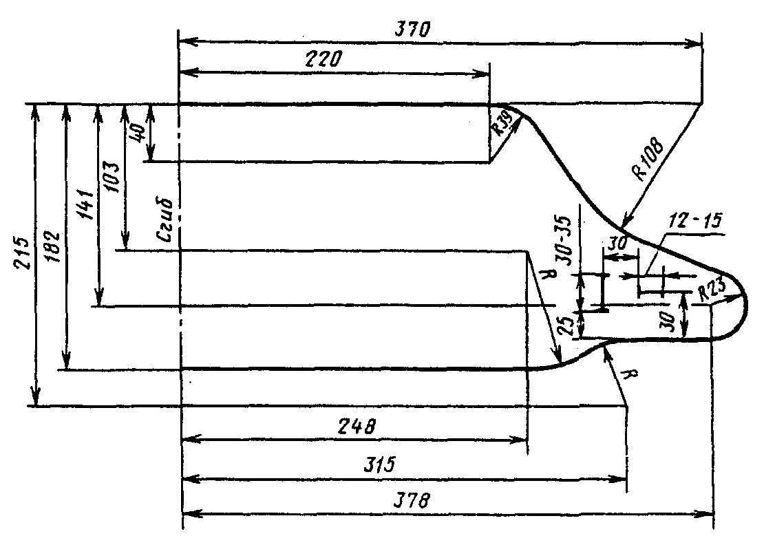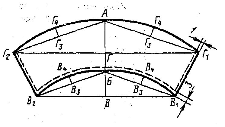 Примечание. Лекало стенки косынки-наколки строят по штриховой линии.