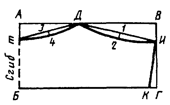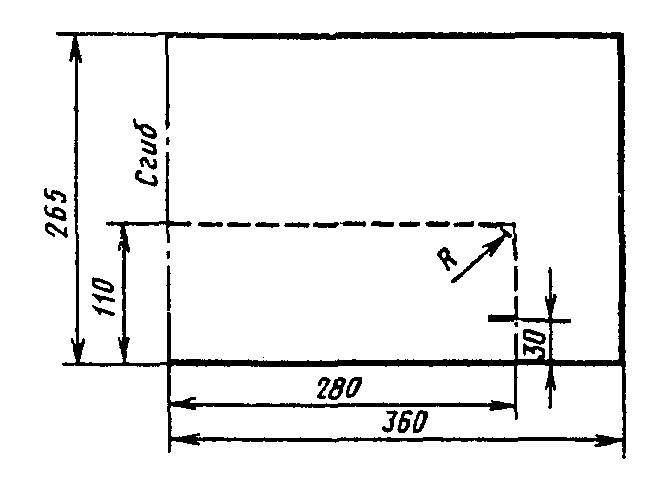 Примечание. Лекала бортика и подбортика строят по штриховой линии.