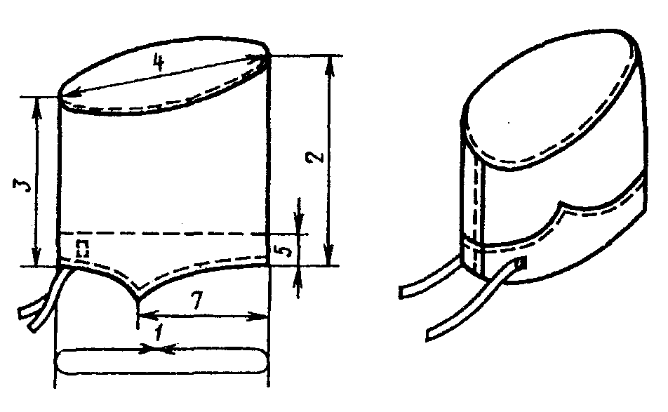 4.3. В головных уборах типа Г на середине донышка подкладки ставят клеймо с указанием размера. В шов стачивания стенок подкладки втачивают тканевый ярлык с указанием реквизитов по