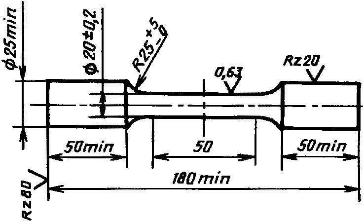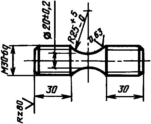 Ra обработанных поверхностей рабочей части образца должна быть не более 0,63 мкм, а шероховатость головок образца