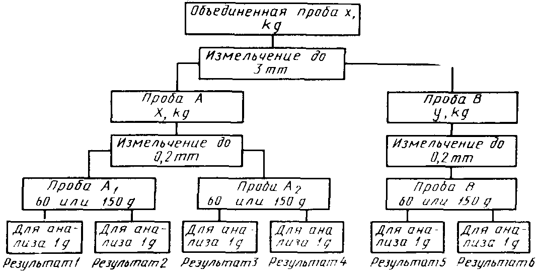 Из шести объединенных проб подготавливают шесть лабораторных проб по