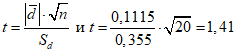t - коэффициент Стьюдента при 95%-ной вероятности согласно