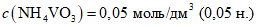 Комплексонат ванадия, раствор концентрации 0,025 моль/дм3 (0,025 М); готовят следующим образом: 50 см3 раствора мета-ванадиевокислого аммония концентрации 0,05 моль/дм3 смешивают с 50 см3 раствора ди-Na-ЭДТА концентрации 0,05 моль/дм3; объемы растворов (с учетом коэффициентов поправок концентрации) измеряют бюреткой или пипеткой.