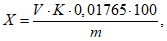 Массовую долю молибденовокислого аммония (X) в процентах вычисляют по формуле