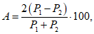 Допускаемые расхождения результатов (A) в процентах вычисляют по формуле