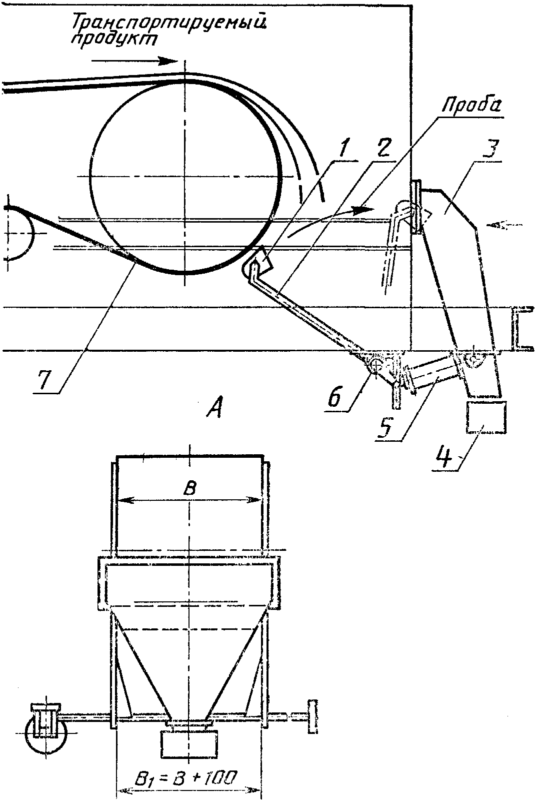 B - ширина ленты транспортера; B1 - ширина пробоотборника