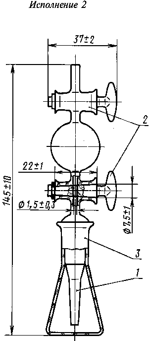 2.14. В собранном виде нижний конец пипетки прибора типа 3 не должен касаться внутренней поверхности дна колбы.