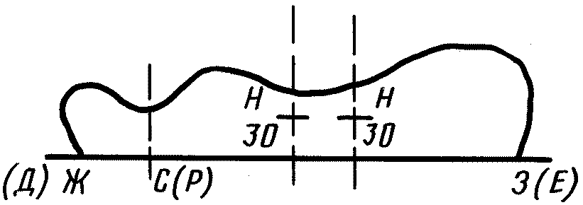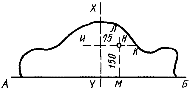 , расположенной на расстоянии 75 мм от хребтовой линии XY, с линией EF, расположенной на расстоянии 150 мм от линии реза