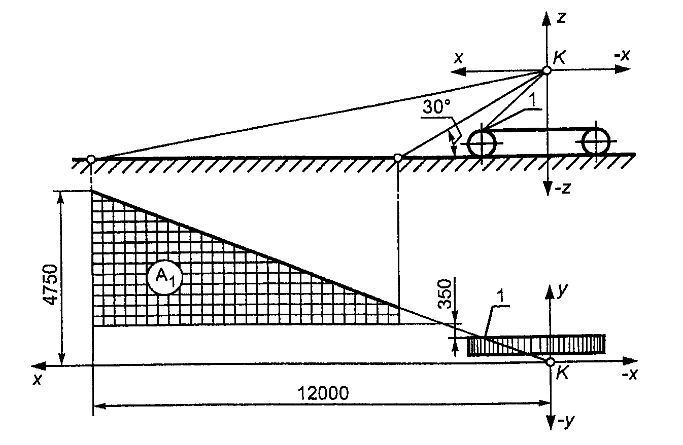 Площадка в передней зоне обзора шириной, равной захвату рабочего органа, на расстоянии 10 м от него | 15 | Вертикальная |