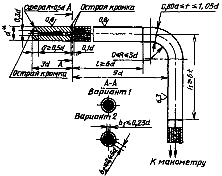 б) приемник полного давления - для измерения полных давлений потока при скоростях движения воздуха более 5 м/с