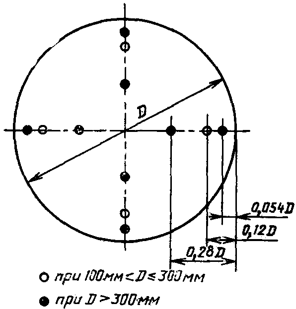 1.3. Координаты точек измерений давлений и скоростей, а также количество точек определяются формой и размерами мерного сечения по