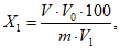 Кислотность X1 в миллиэквивалентах, т.е. в см3 0,1 моль/дм3 раствора гидроокиси натрия или гидроокиси калия в пересчете на 100 г продукта, вычисляют по формуле
