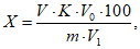 где V - объем точно 0,1 моль/дм3 раствора щелочи, израсходованный на титрование, см3;