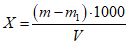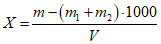 Сухой остаток (X), в мг/л, вычисляют по формуле