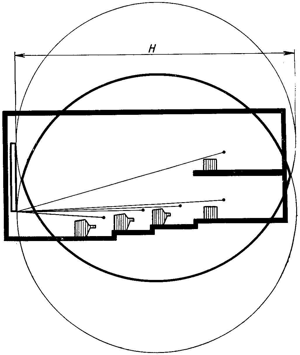 - границы зоны наилучшего видения для плоского экрана в плане;