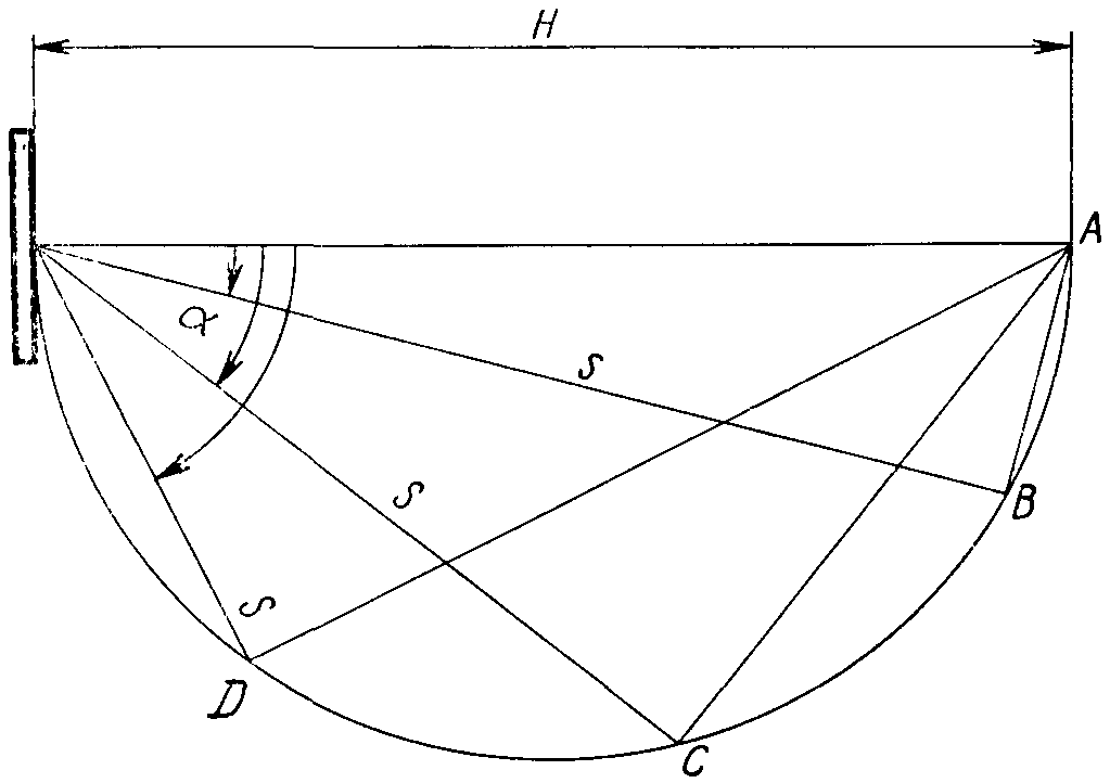 - границы зоны наилучшего видения для плоского экрана в разрезе;