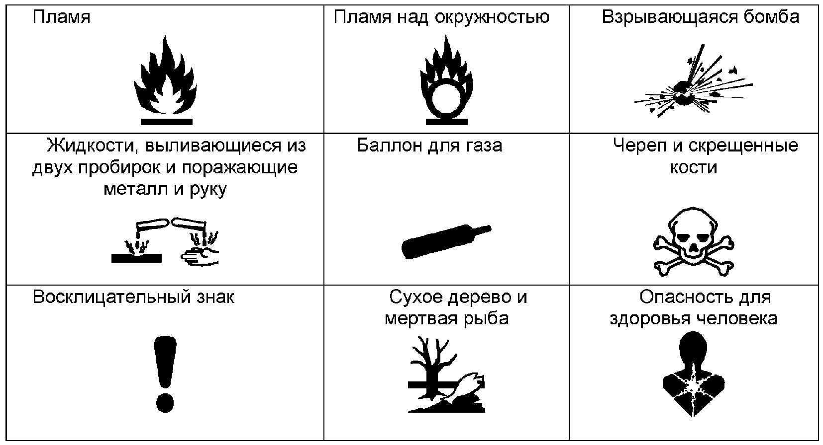 Пирофорная жидкость | ![]() | Опасно (Danger) | H250: Спонтанно воспламеняется на воздухе (Catches fire spontaneously if exposed to air) | Меры по безопасному обращению (предотвращение): - P210: Беречь от источников воспламенения/нагревания/искр/открытого огня. Не курить; - P222: Не допускать контакта с воздухом; - P280: Использовать перчатки/спецодежду/средства защиты глаз/лица (тип указывает производитель/поставщик). Меры по ликвидации ЧС (реагирование): - P302 + P334: ПРИ ПОПАДАНИИ НА КОЖУ: Погрузить пораженные участки кожи в холодную воду или перевязать влажными бинтами <*>; - P370 + P378: При пожаре тушить... (средство пожаротушения указывает производитель/поставщик) <**>; - P335 + P334: Удалить попавшее на кожу вещество с помощью ветоши. Погрузить пораженные участки кожи в холодную воду или перевязать влажными бинтами <***>. Условия безопасного хранения: - P422: Хранить в атмосфере... (наименование жидкости или инертного газа указывает производитель/поставщик) |