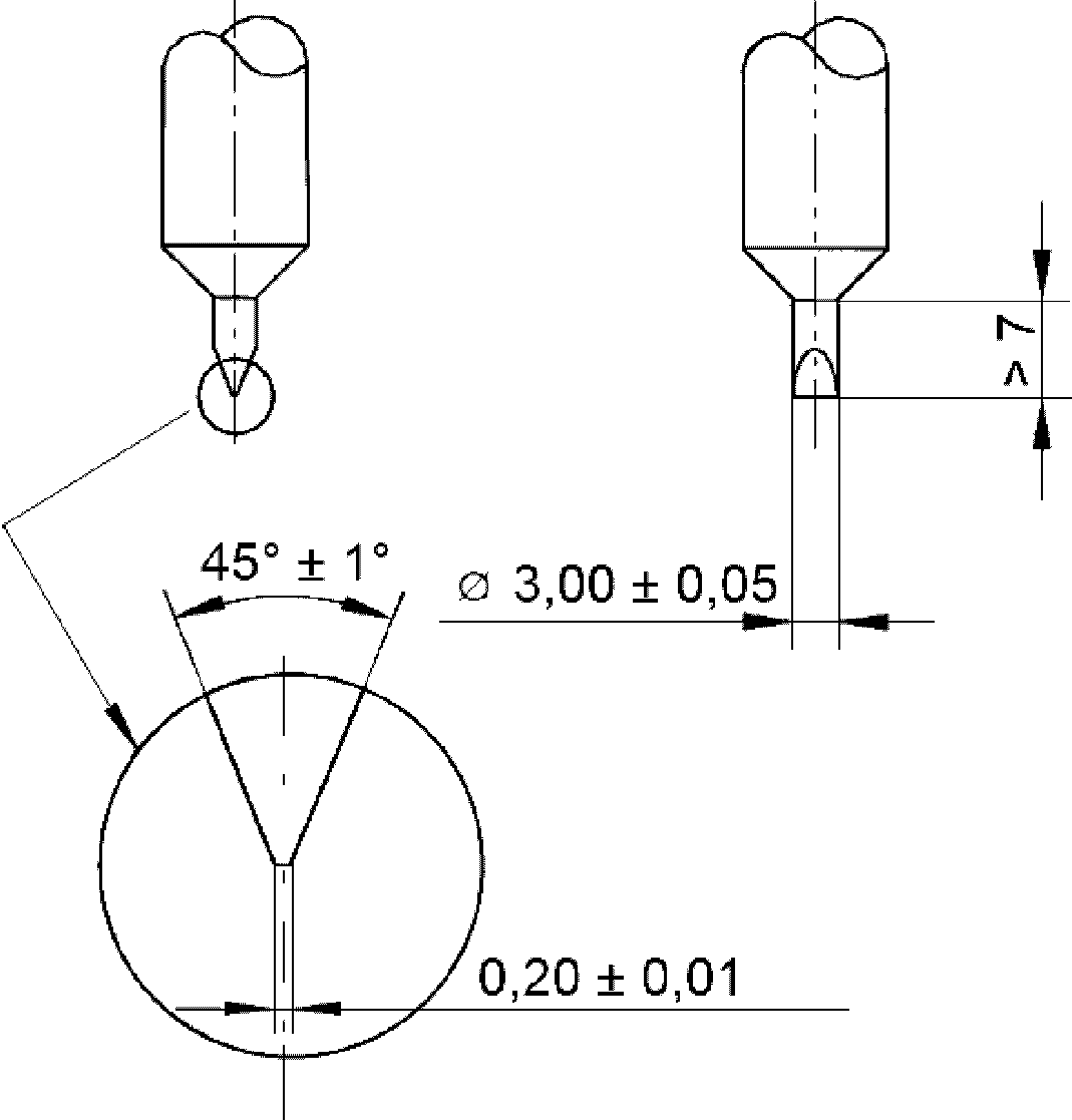 Индентор формой и размерами, соответствующими приведенным на