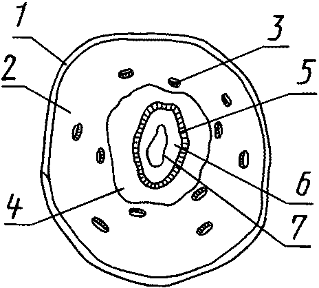 плода - мезокарпий; 3 - проводящие пучки; 4 - двухслойный