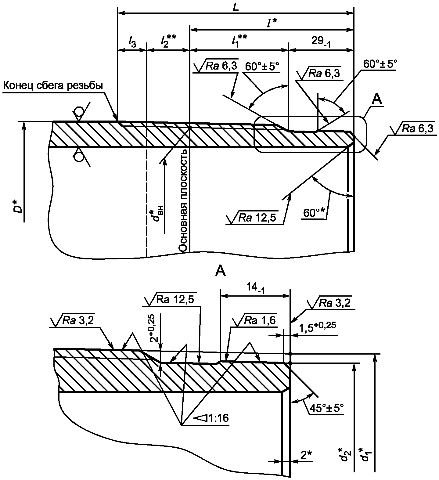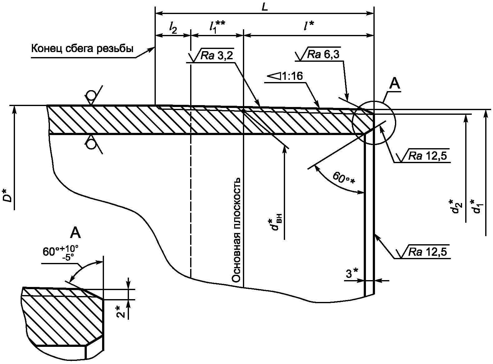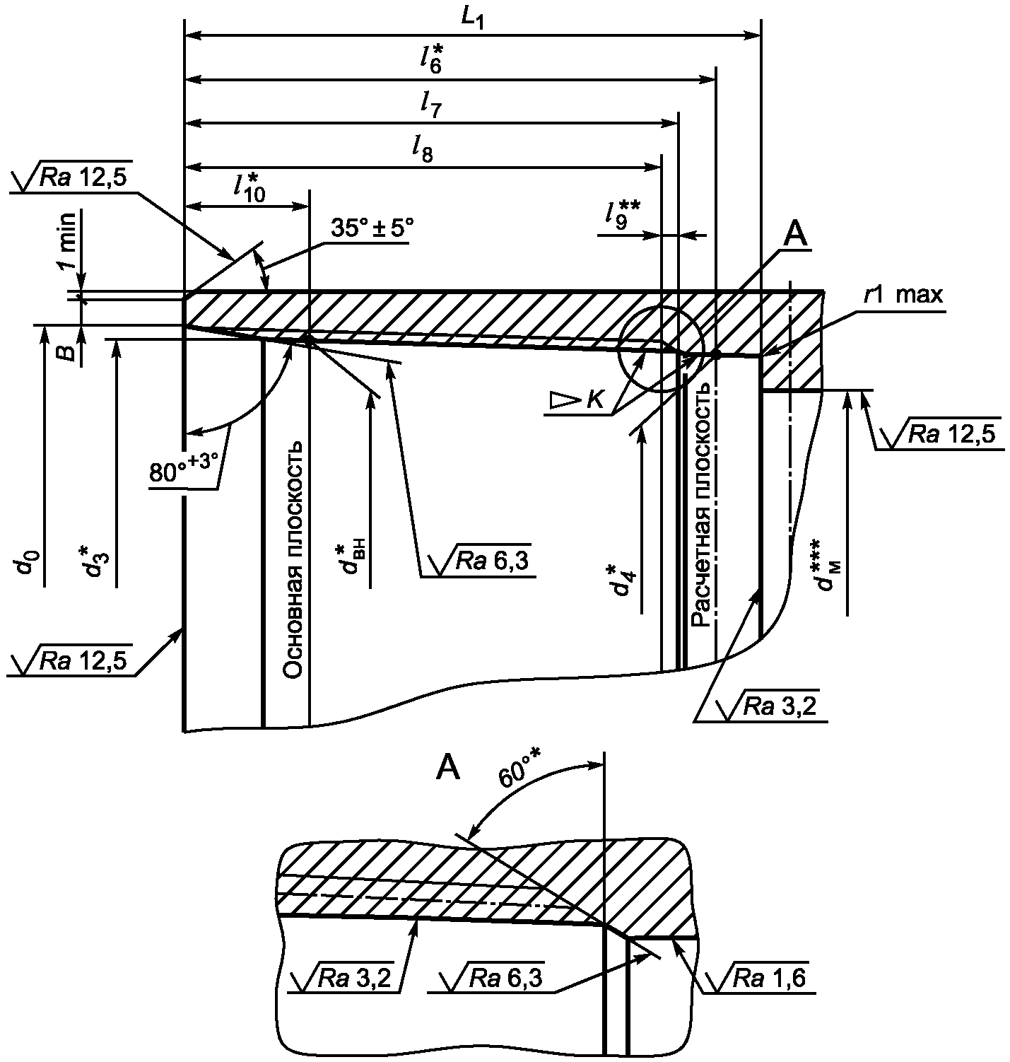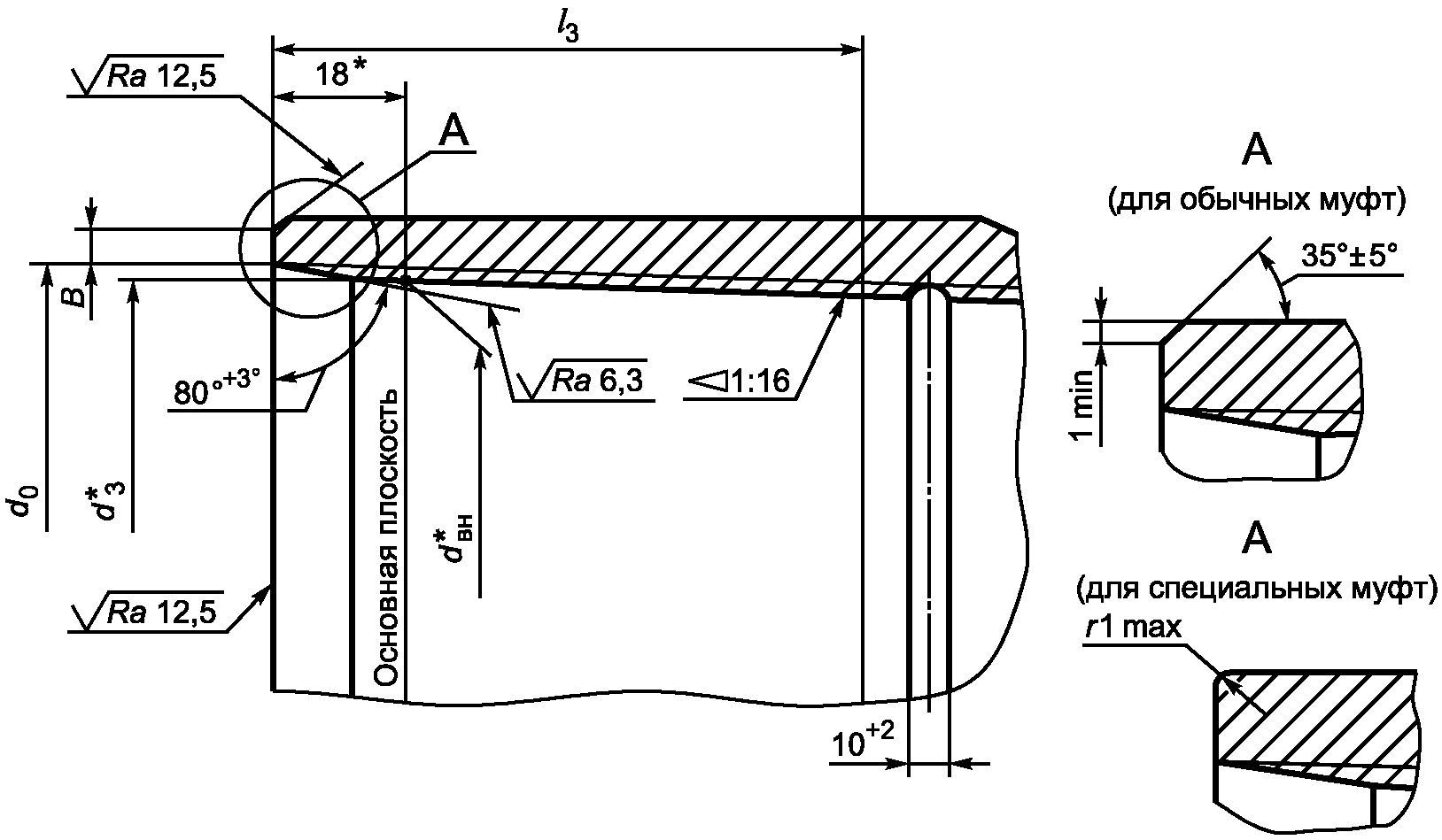 A3, определяемый как расстояние между плоскостью торца муфты и измерительной плоскостью резьбового калибра-пробки