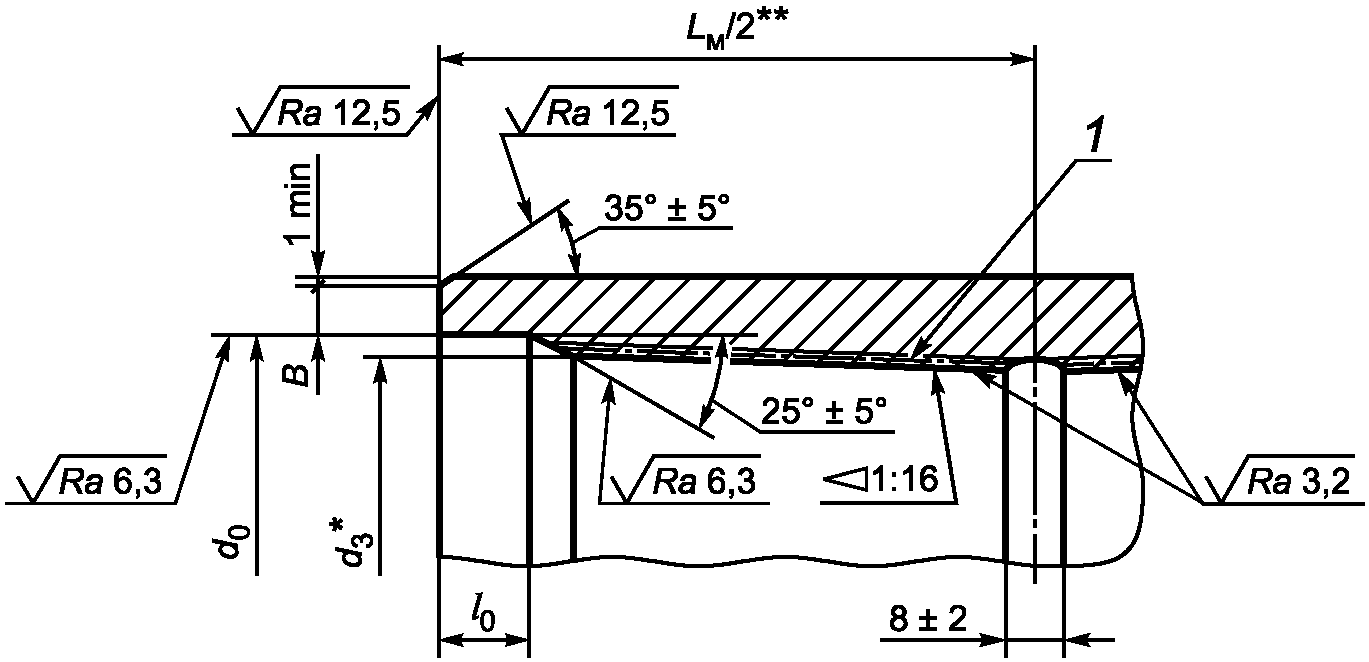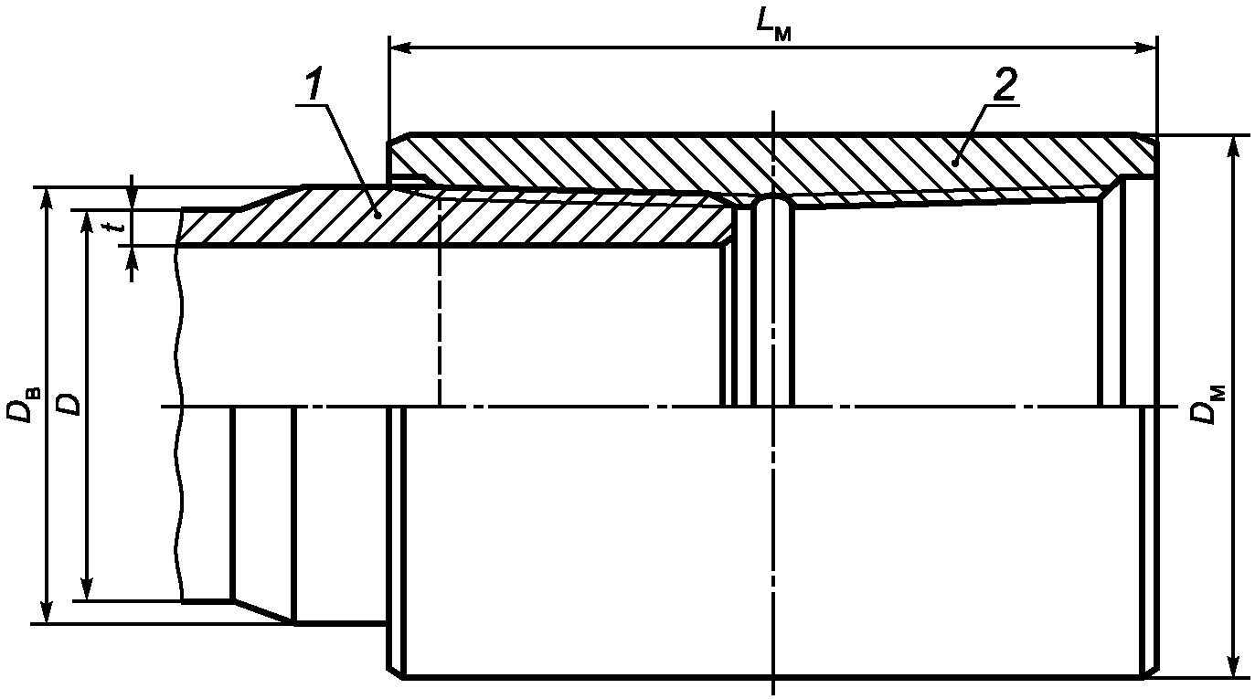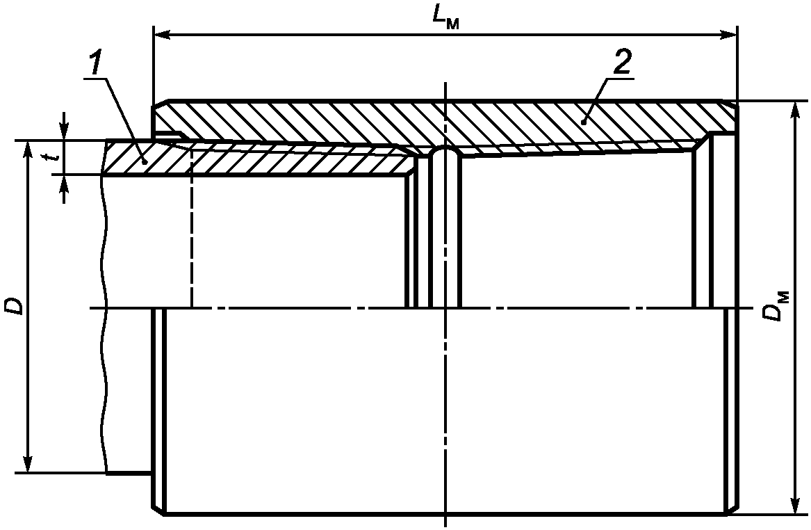 Натяг уплотнительной конической расточки муфты, определяемый как расстояние между плоскостью торца муфты и измерительной плоскостью гладкого калибра-пробки, должен быть равен длине резьбового конуса муфты