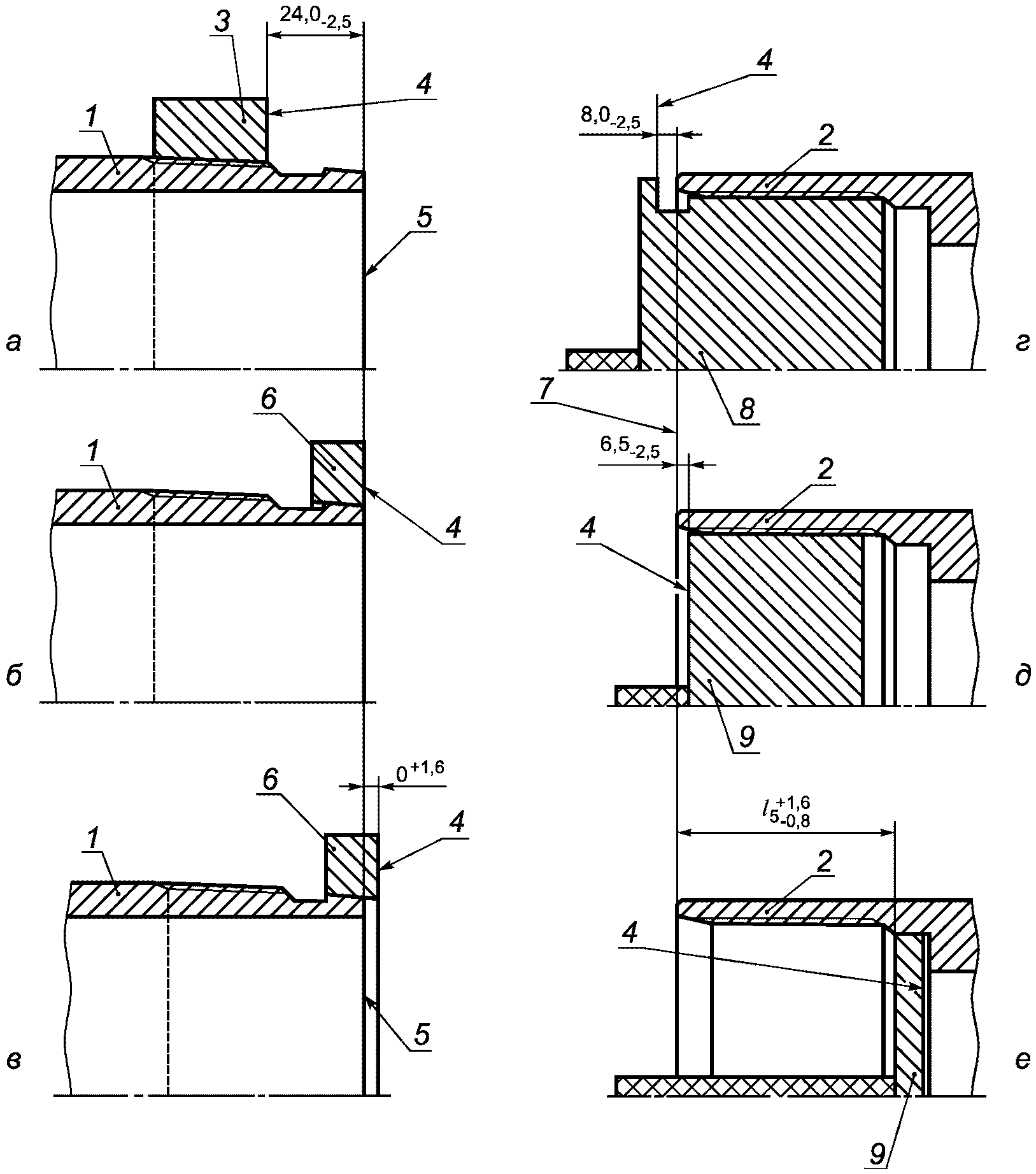 7 - плоскость торца муфты; 8 - резьбовой калибр-пробка;
