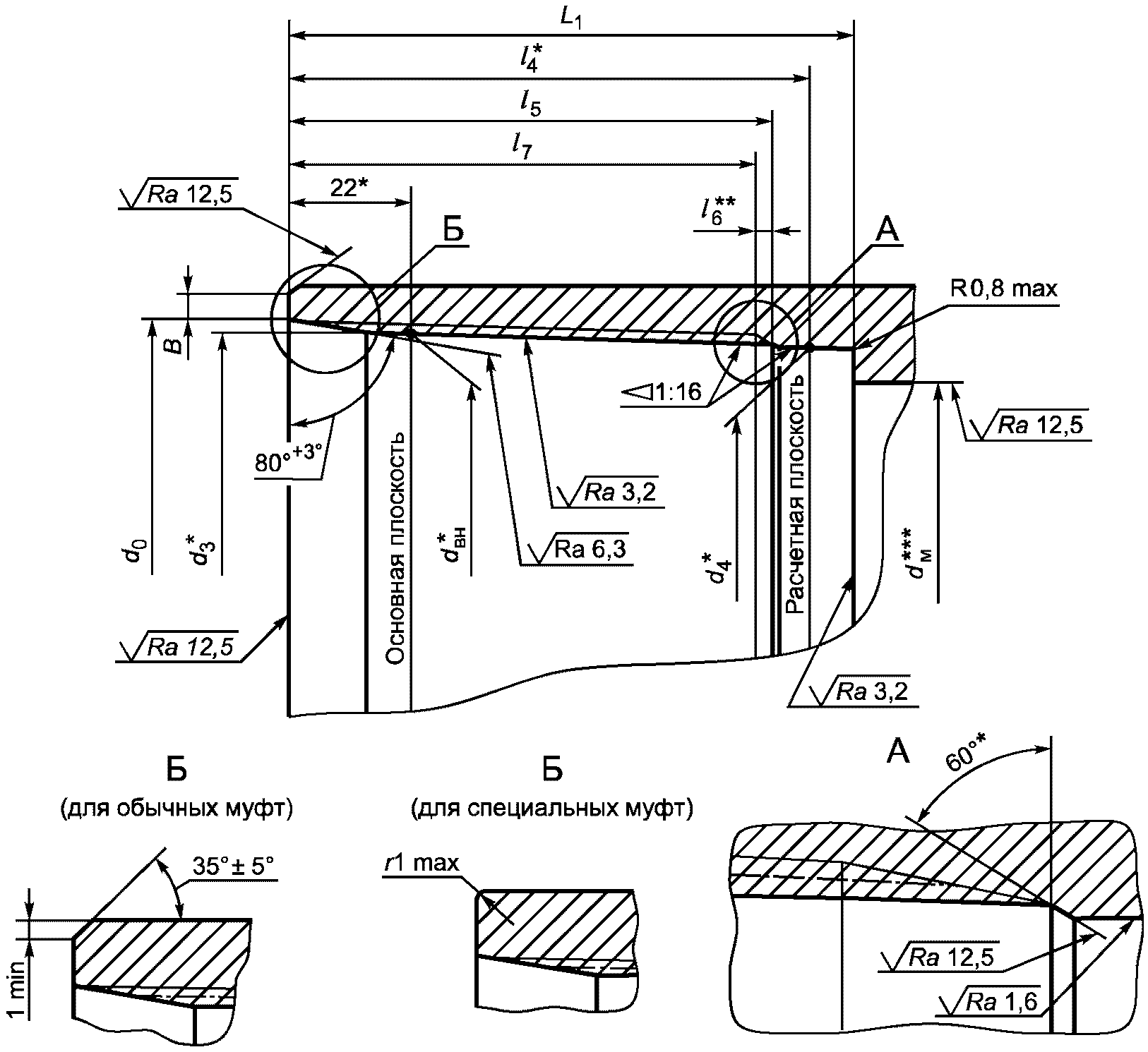 ГОСТ 25575-83 Калибры для соединений с трапецеидальной резьбой обсадных труб и муфт к ним. Типы, основные размеры и допуски
