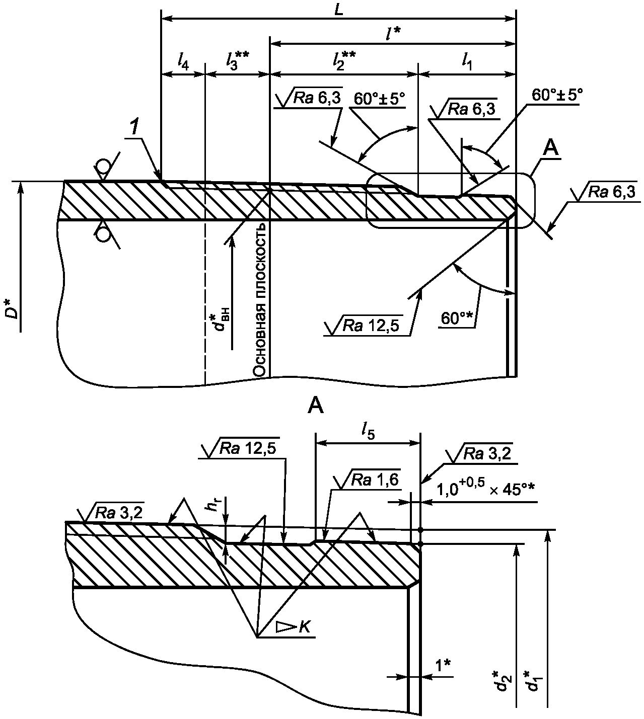 A2, определяемый как расстояние между плоскостью торца трубы и измерительной плоскостью гладкого калибра-кольца (