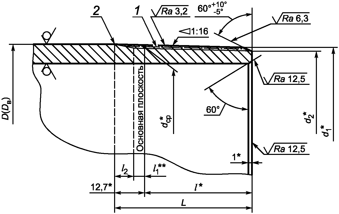 Примечание - Конусность резьбы характеризуется изменением диаметра резьбы в осевом направлении и определяется разностью диаметров (наружных, внутренних и средних) между двумя любыми перпендикулярными к оси сечениями, деленной на расстояние между этими сечениями.