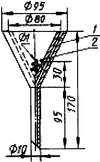1 - коническая часть воронки; 2 - цилиндрическая часть