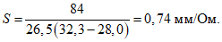 Пример 1. Определить чувствительность омметра, погрешность которого нормирована в процентах от длины рабочей части шкалы, при показании 30 Ом. Длина рабочей шкалы омметра L = 84 мм, ей соответствует 26,5 делений равномерной шкалы.