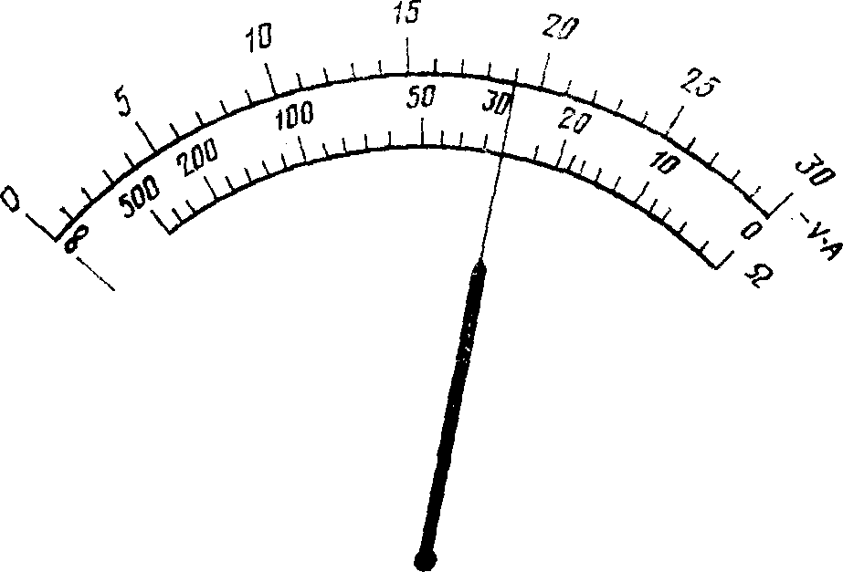 Пример 2. Определить чувствительность омметра, погрешность которого нормирована в процентах от всей длины шкалы, при показании 30 Ом. Длина шкалы L = 95 мм, ей соответствует 30 делений. Показания магазина те же, что и в