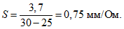Расстояние между отметками 25 и 30 равно 3,7 мм, чувствительность