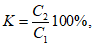 Коэффициент проницаемости фильтра K, %, рассчитывают по формуле