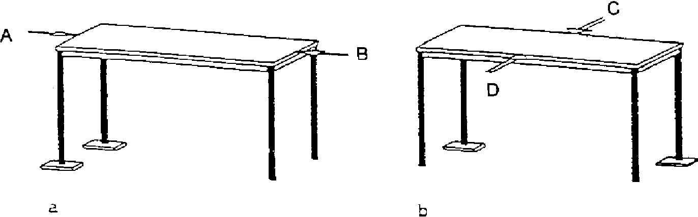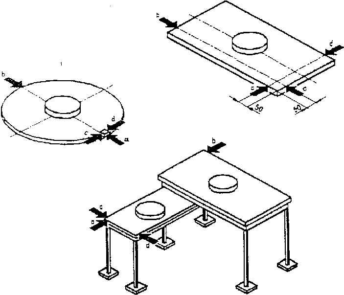Для столов, имеющих круглую или квадратную крышку с прямоугольной конструкцией опор основания или ножек, направление приложения сил a, b и c, d должно быть определено относительно опор (ножек).