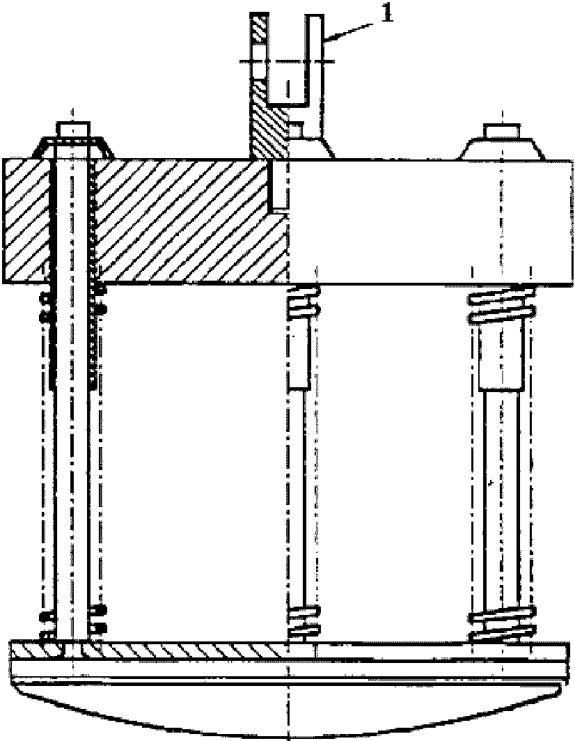 5.3.1 Цилиндрическое тело диаметром около 200 мм, со спирально сжатыми пружинами и свободно перемещающееся относительно ударной поверхности в направлении, перпендикулярном к плоскости центральной площади ударной поверхности.