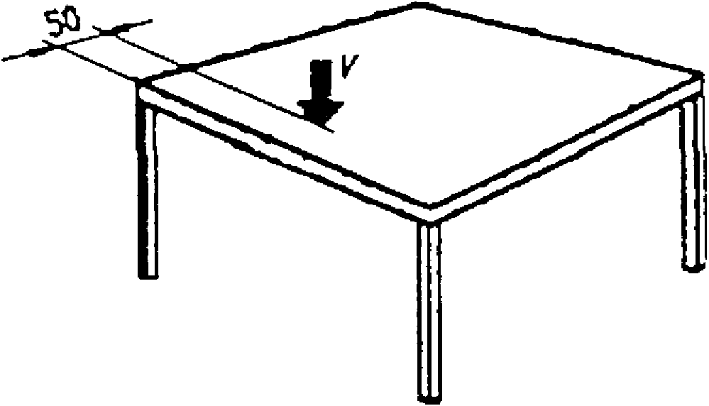рисунку 6. Вертикальная нагрузка должна быть приложена на расстоянии 50 мм от продольной кромки крышки стола (см.