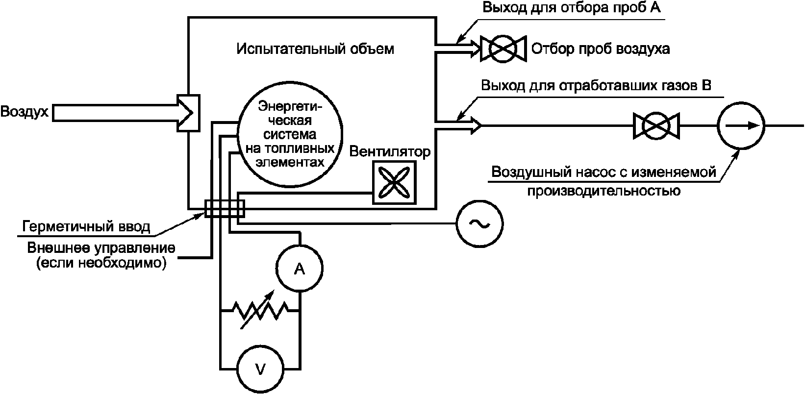 Обобщенная схема переносной энергоустановки на топливных элементах, предлагаемая настоящим стандартом, представляет собой сборку из некоторых или всех, представленных на