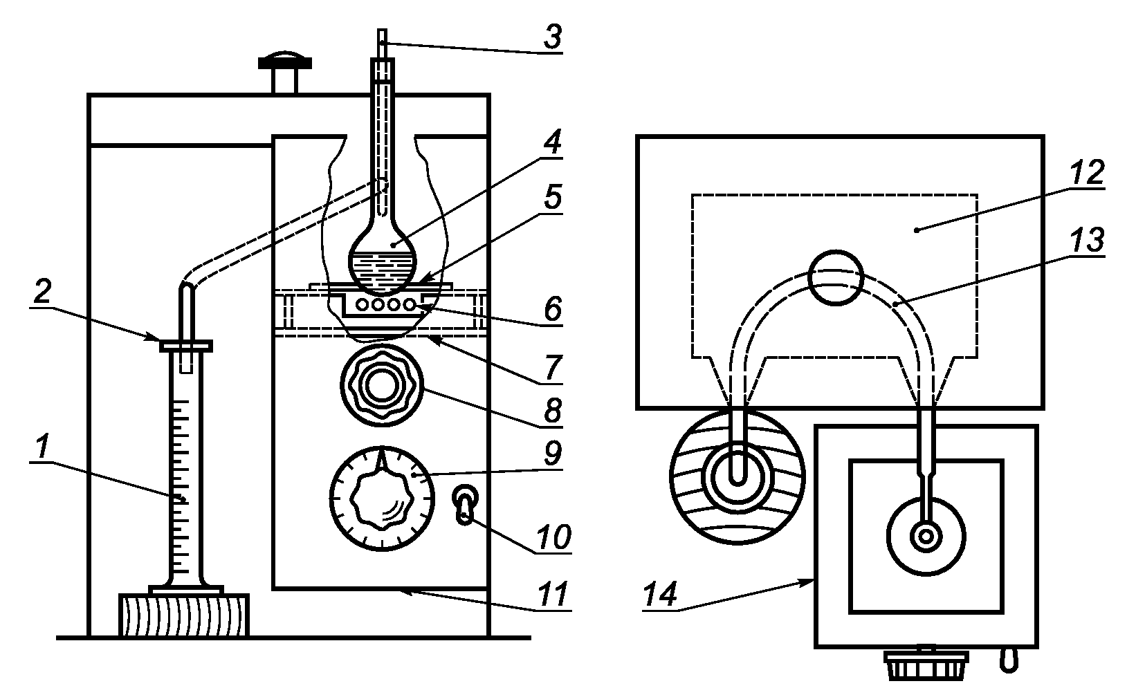 Примечание - Объем конденсата (отогнанного продукта) выражают в процентах от объема испытуемого образца.