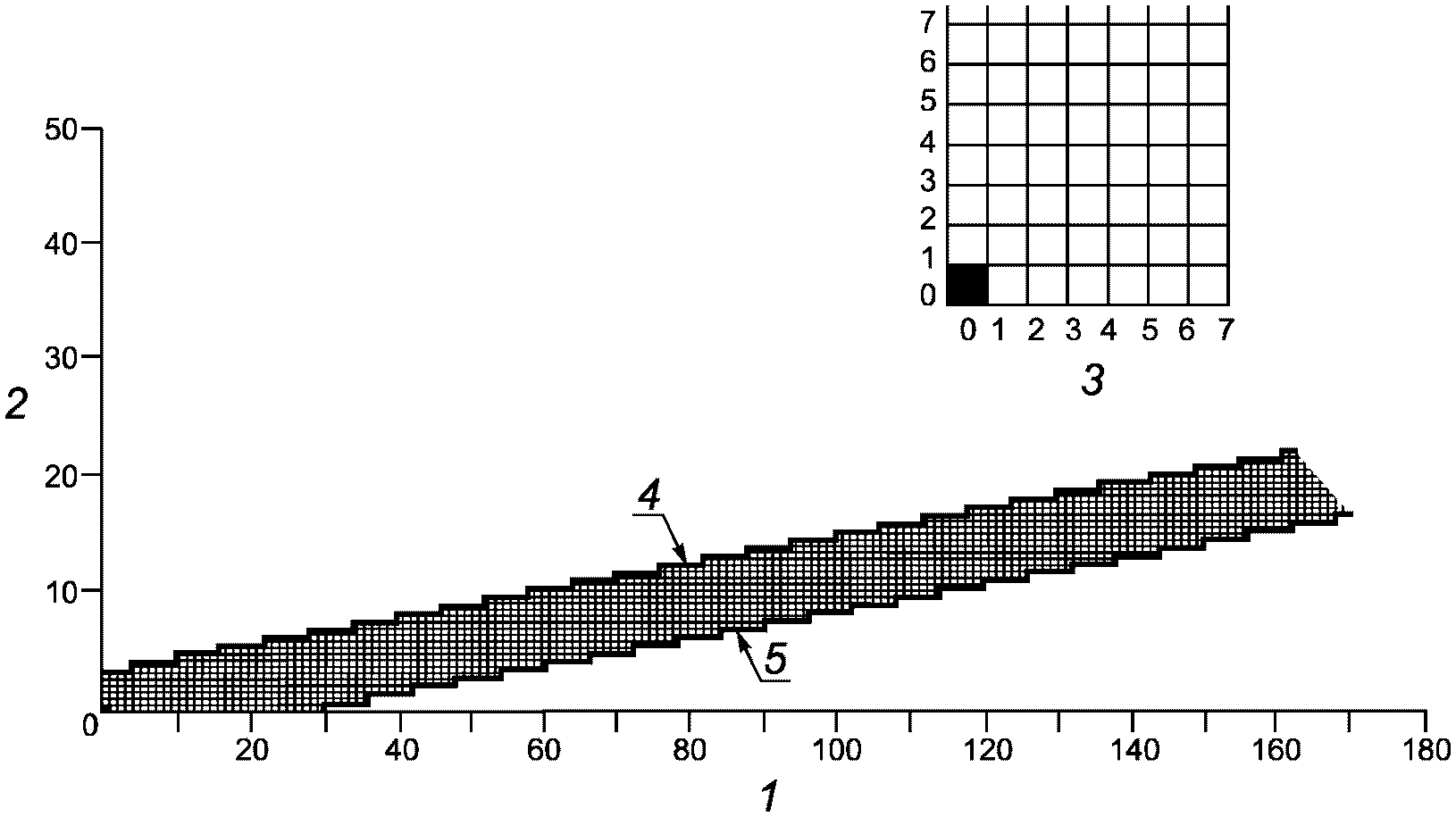 - прошедшей испытание, если цепочка заполненных клеток проходит, ниже линии предела 1 как на